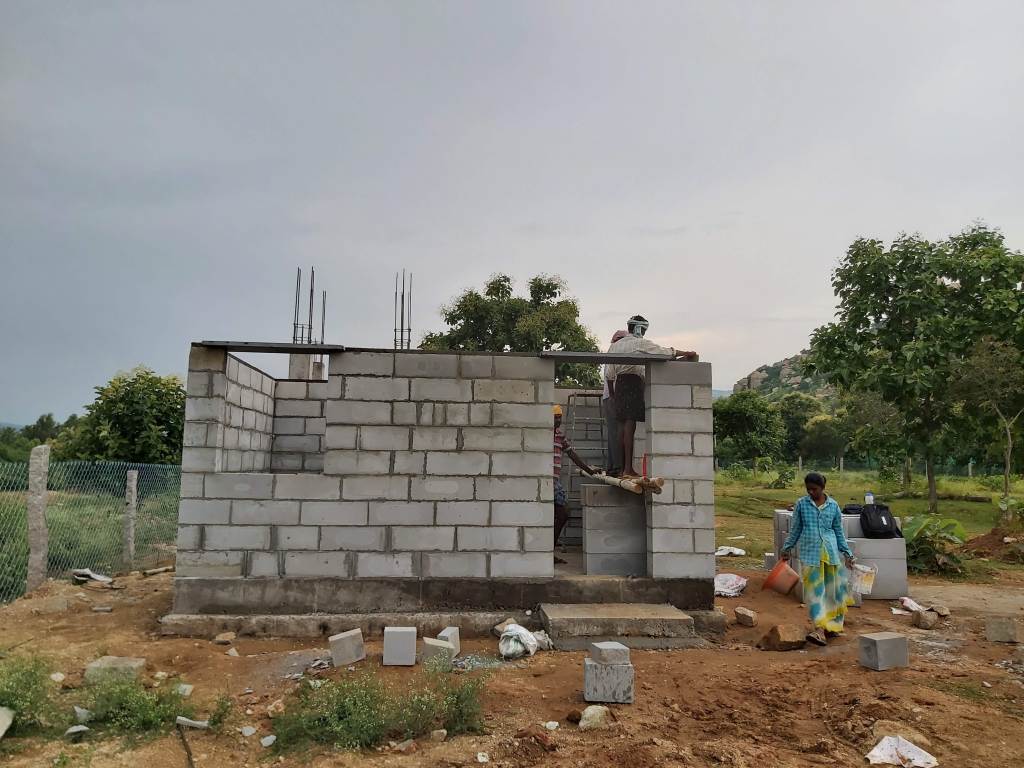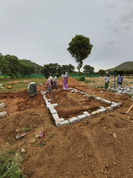 Along with fencing work, we started work on building a shed. The shed (or any temporary structure) helps in getting an electric connection easily. AP State regulations require some structure at site before an electric connection is provided. The shed also served the purpose of storage for construction tools and material, especially, covered space for storing cement.